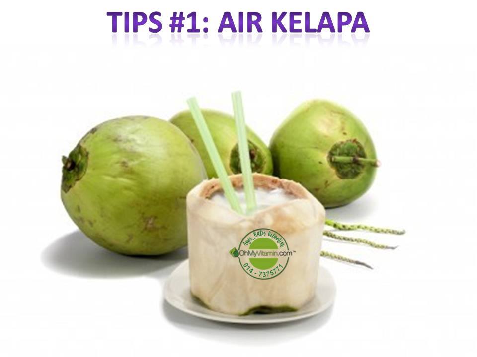 - 1) minum air kelapa yang ‘pure’ tanpa gula atau ais.