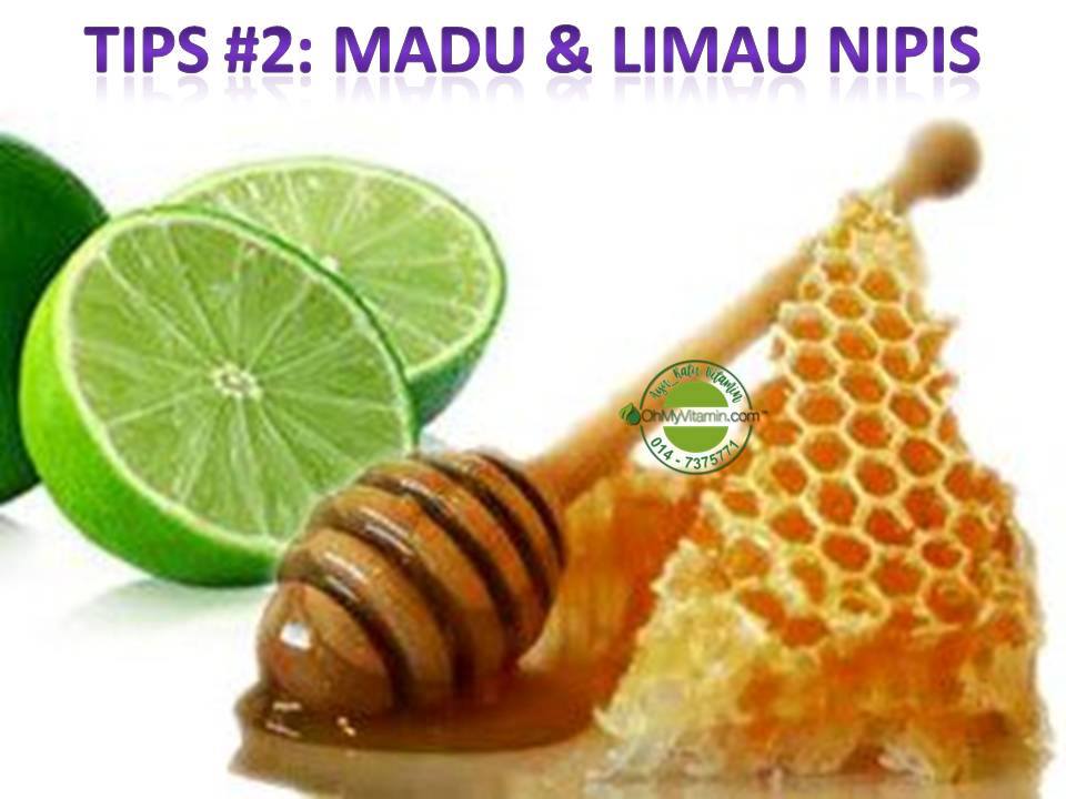 - 2)1 sudu madu + 1 biji limau nipis + air kosong.