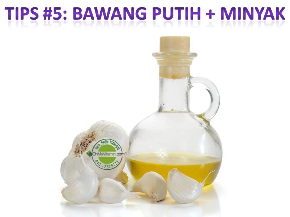 - 5)Ambil 2 ulas bawang putih, dibakar hingga lembut, kemudian di lenyekkan. Dan tambah sedikit minyak masak. Kemudian lulur ke dada, leher, belakang bayi