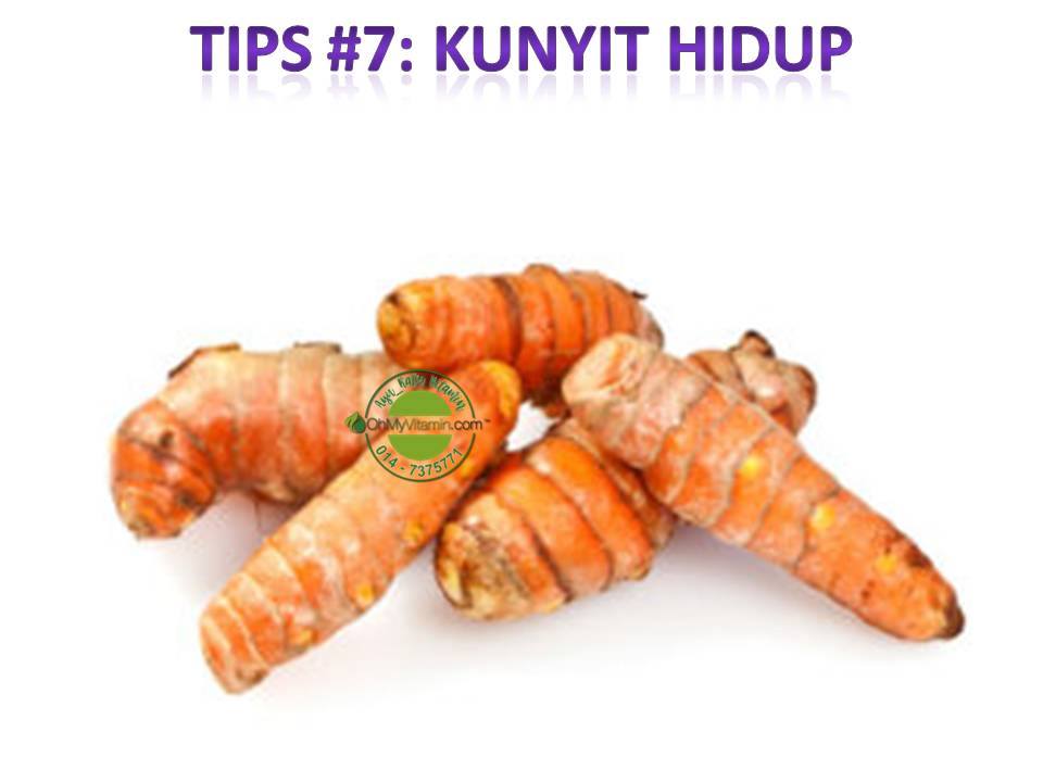 - 7) Bakar kunyit hidup. Gesekkan pada lesung batu dan ambil air kunyit tersebut, calitkan pada hidung dan sapu pada dada
