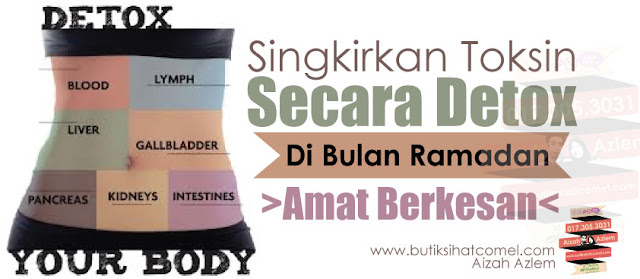 Detox ialah satu proses menyingkirkan bahan toksik atau buangan dari tubuh badan manusia. Tahukah anda , Badan manusia mempunyai sistem detox sendiri iaitu hati, usus dan ginjal. Apabila kita berpuasa, badan akan melakukan proses detox semulajadi. Detox dilakukan untuk memastikan sistem penghadaman usus bekerja dengan sepatutnya dan memastikan kulit bersih serta segar. dan ia juga turut memastikan sistem buah pinggang kita berjalan dengan lancar.